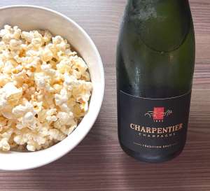 Vi begynner med Popkorn og en vanlig Brut Champagne!
