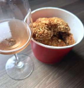 Rosè Champagne og fritert kylling hørtes ut som en god match i mitt hode, likevel slet jeg litt med det samme her som på popkorntesten. Dosagen på denne Champagnen er også 8 gram sukker (for øvrig helt tilfeldig), og den er litt for fruktig til den sprøbakte, salte og fete kyllingen. Altså, jeg skal ikke klage, det passer godt sammen, og det er ypperlig søndagsmat for all del, den sitter liksom ikke helt 100%. Dette må utforskes mer.