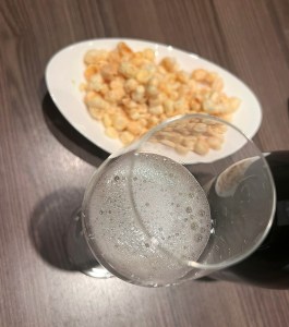 Champagnen, en 2012 vintage (litt meget til snacks, men det var det jeg hadde åpent), passer veldig godt til. Deilig Champagne, deilig, sprø ost… Kan anbefales på det varmeste!