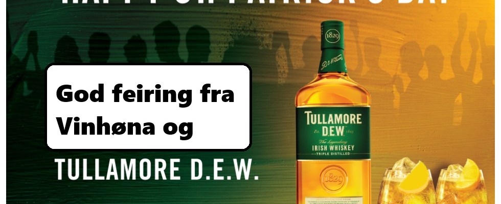 Hei og hopp! Neste søndag er det St. Patricks dag, her er Vinhønas tips til hva du kan servere i glasset! Tullamore D.E.W. har lenge vært forbundet med irsk kaffe, det er derfor Vinhøna har fokusert på nettopp dette irske whiskymerket i denne forbindelse. Den er også grønn og fin, så flasken kan jo ikke passe bedre på et St. Patricks pyntet bord!