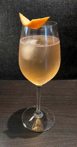 Mos sukker og mynteblader i et glass, fyll så med Calvados og eplejuice, flere mynteblader og topp med Champagne.