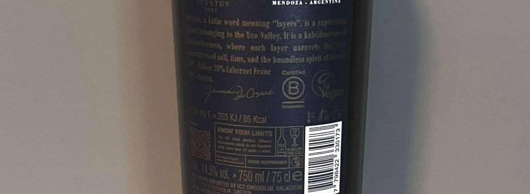 Trivento Stratus 2021: Kompleks aroma med mørke bær og frukter, skogsbær, solbær, lett modent fruktpreg, krydder og hint av fat. Den er fruktig, rund, syrefrisk med god fylde, lang og tørr ettersmak med fin struktur. En deilig og fruktig vin som er ypperlig til kjøtt. 89p