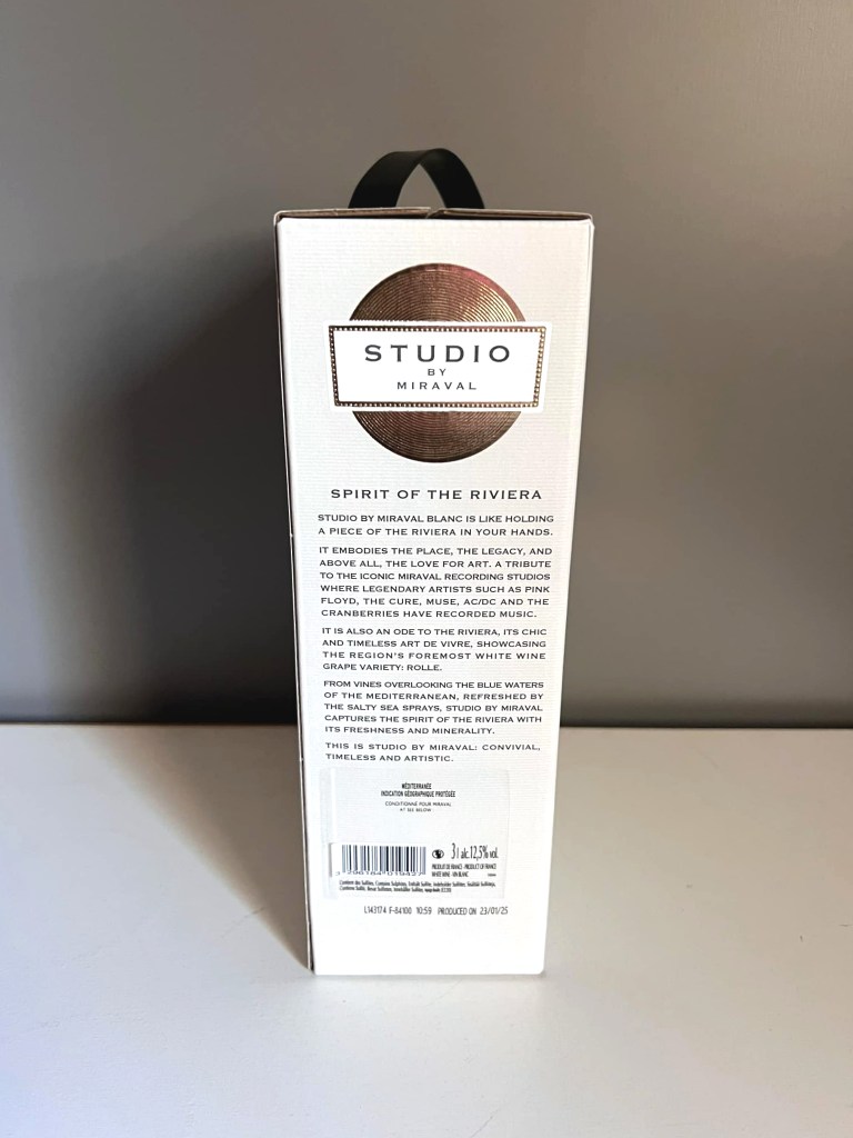 Studio by Miraval Blanc er en egenartet, laid-back vin med leskende friskhet, florale overtoner og en saltmineralsk touch – perfekt til hedonister og andre med en forkjærlighet for å leve i nuet. Med et glass av denne vinen i hånden er det – uansett hvor du måtte befinne deg i virkeligheten – lett å drømme seg bort til en solfylt dag ved den franske rivieraen, døsende i skyggen av et oliventre, hvor den eneste lyden du kan høre er milde bølgeskulp fra det asurblå havet foran deg…