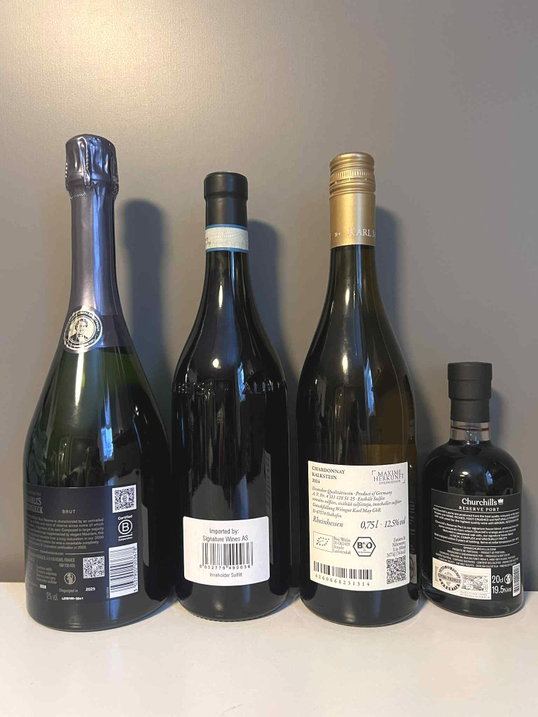 Bruna Grimaldi Scassa Barbera d’Alba Superiore 2022: Frisk og fruktig nese, ung, skogsbær, kirsebær, urter, innbydende krydderpreg. Den er fruktig og rund på smak, frisk, god fylde, stofflig, lang og tørr utgang. En god og smakfull Barbera, verd prisen og litt til! 90p