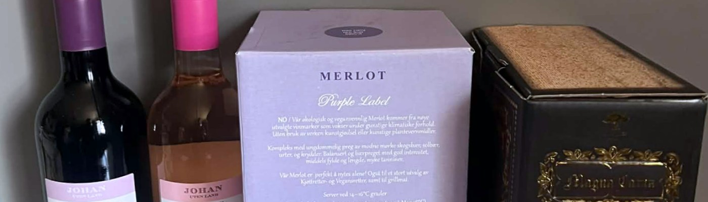 Johan Uten Land Purple Label Merlot og Johan Uten Land Purple Label Merlot 2025 er samme vin, men hvis tallene til VP stemmer har flasken 0.2 gram mindre syre per liter.
