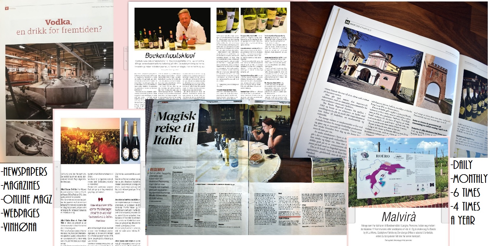 - Association of Norwegian Wine Clubs, I write about wine and travel in both their webpage and 2-4 pages in their magazine Bulletin which is issued 6 times a year.