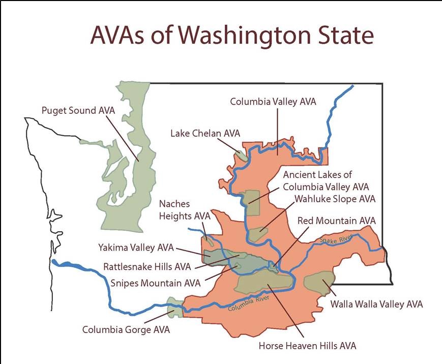 Columbia Valley AVA og Walla Walla AVA deles med Washington.