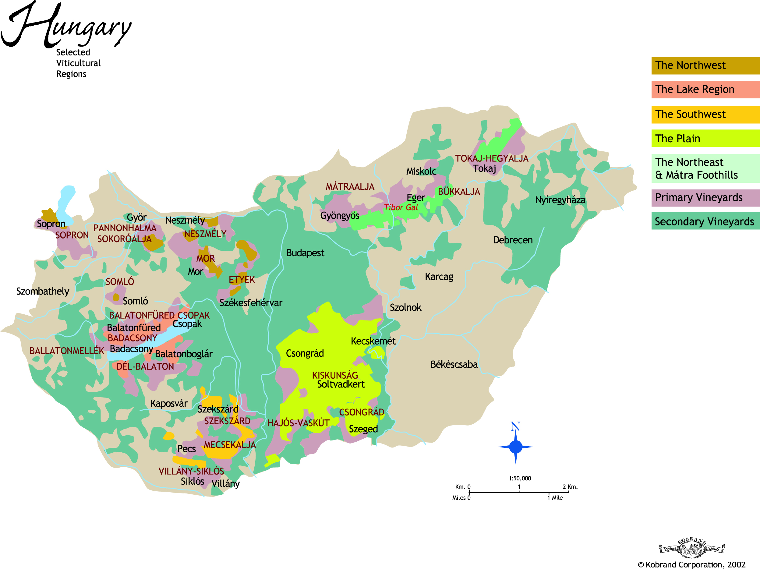 Ungarn er fordelt på 22 vinområder, delt av Donau på midten, og de produserer mest hvitvin.