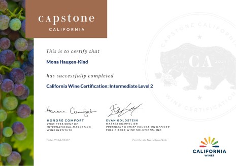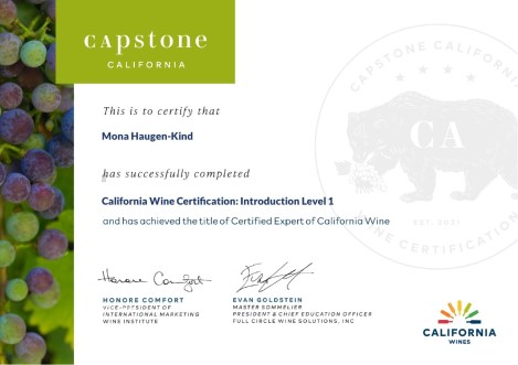 Mine sertifiseringer etter Sommelierutdannelsen.